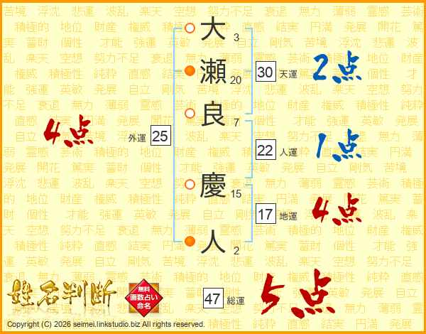大瀬良慶人さんの総運は47画の5点!