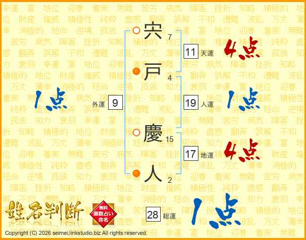 宍戸慶人さんの総運は28画の1点!