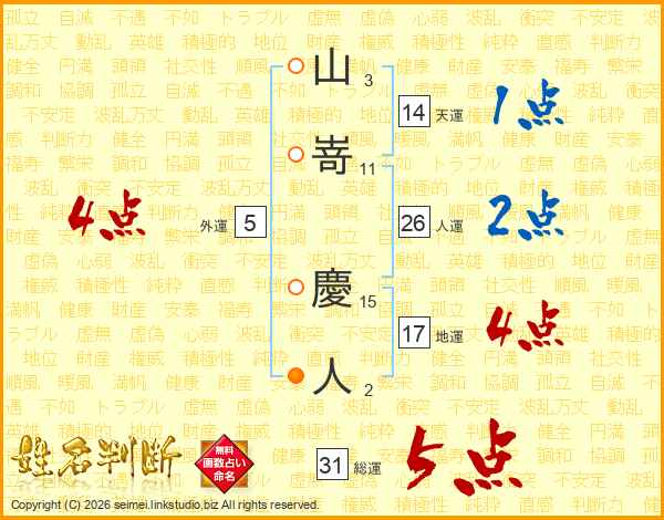 山(3画)嵜(11画) 慶(15画)人(2画)