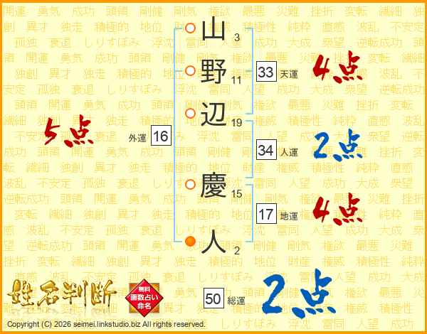 山野辺慶人さんの天運は33画の4点!