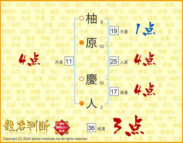 柚原慶人さんの人運は25画の4点!