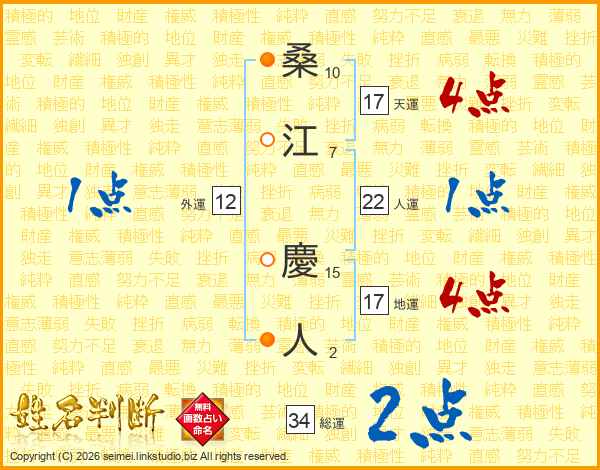 桑江慶人さんの地運は17画の4点!