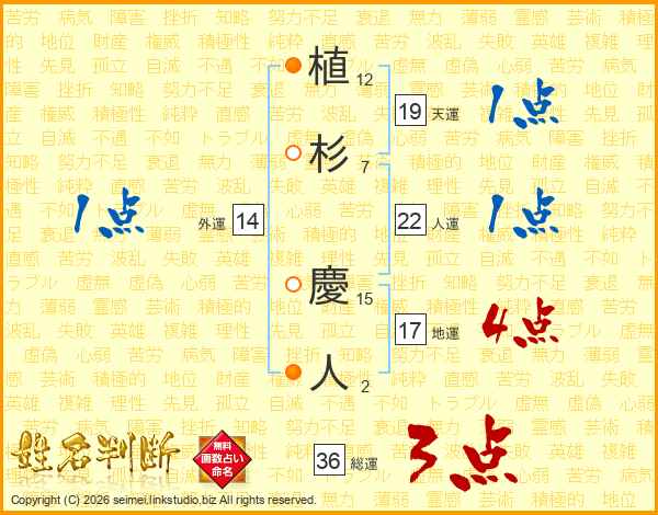 植杉慶人さんの総運は36画の3点!