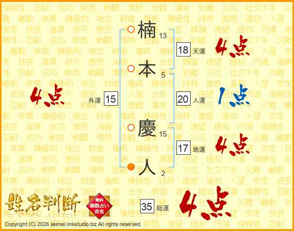 楠本慶人さんの総運は35画の4点!