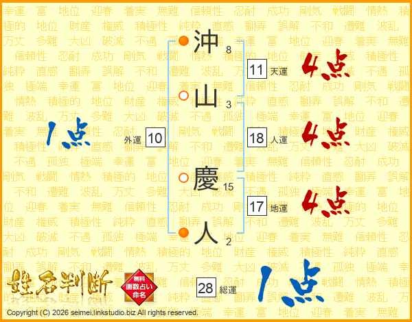 沖山慶人さんの人運は18画の4点!