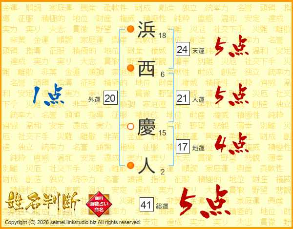 浜西慶人さんの総運は41画の5点!