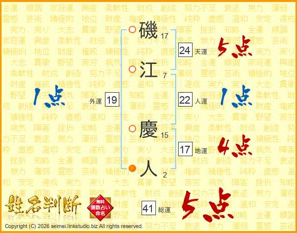 磯江慶人さんの地運は17画の4点!