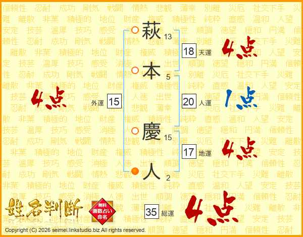 萩本慶人さんの総運は35画の4点!