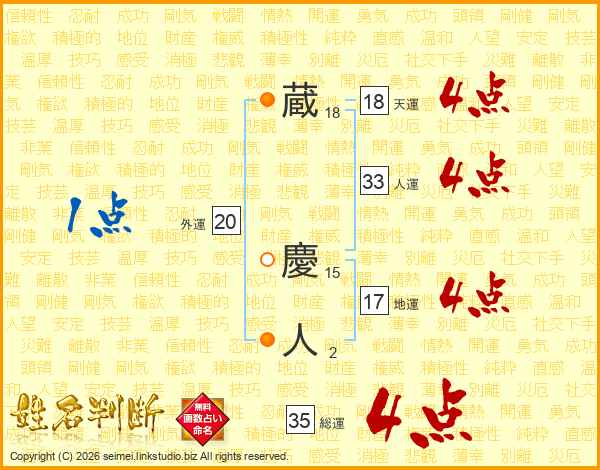 蔵慶人さんの人運は33画の4点!