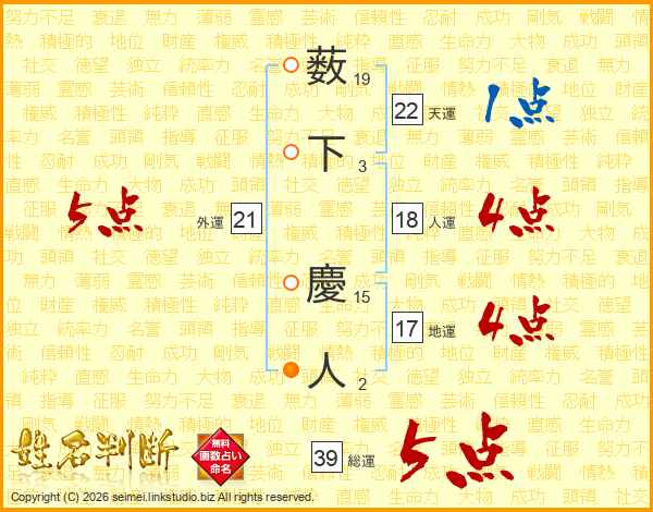 薮下慶人さんの総運は39画の5点!