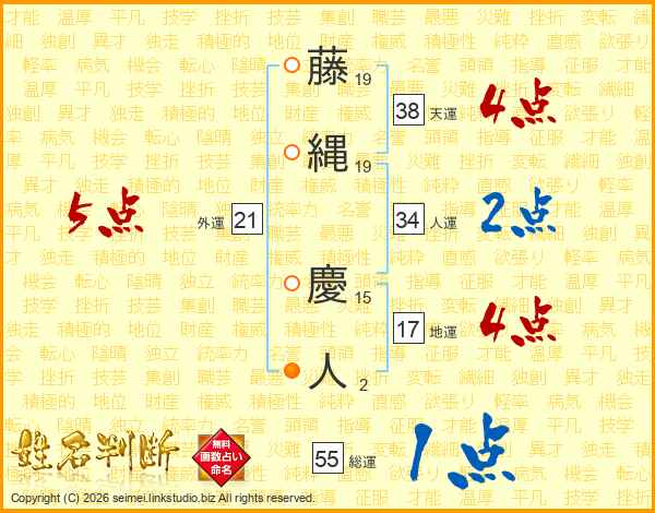藤(19画)縄(19画) 慶(15画)人(2画)