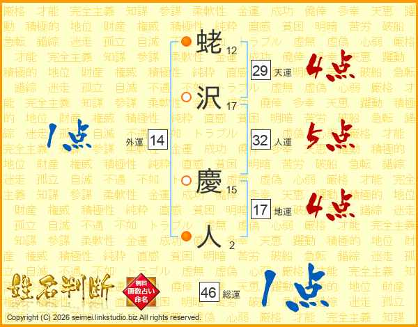 蛯沢慶人さんの人運は32画の5点!