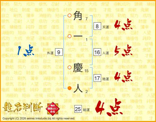 角一慶人さんの総運は25画の4点!
