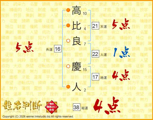 高(10画)比(4画)良(7画) 慶(15画)人(2画)