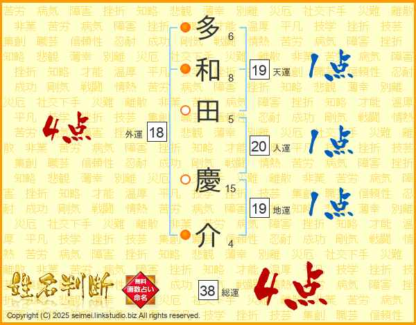 多(6画)和(8画)田(5画) 慶(15画)介(4画)