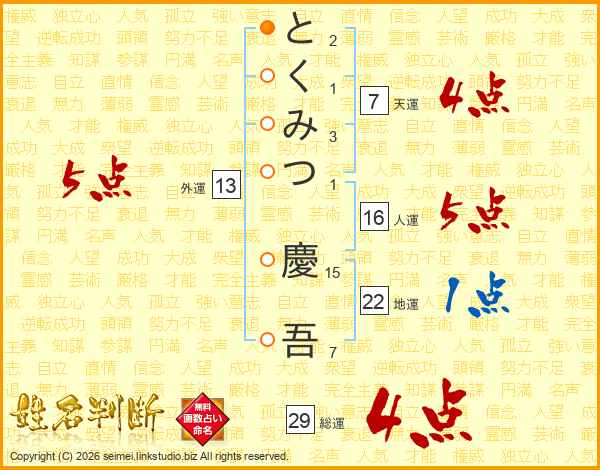 とくみつ慶吾さんの外運は13画の5点!
