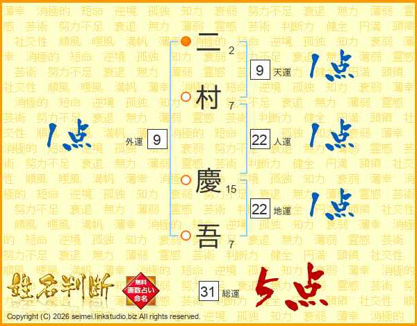二村慶吾さんの総運は31画の5点!