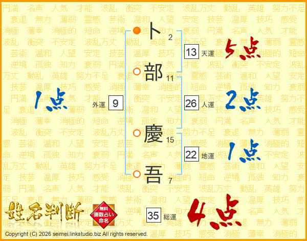 卜部慶吾さんの総運は35画の4点!