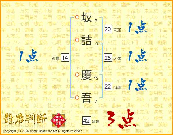 坂詰慶吾さんの総運は42画の3点!