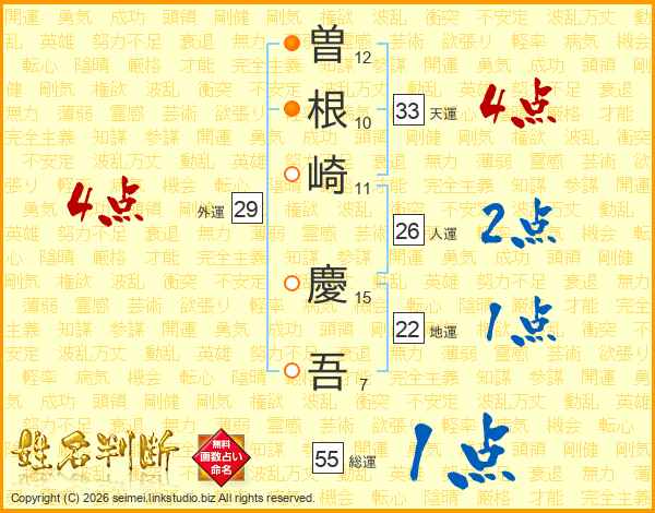 曽根崎慶吾さんの天運は33画の4点!