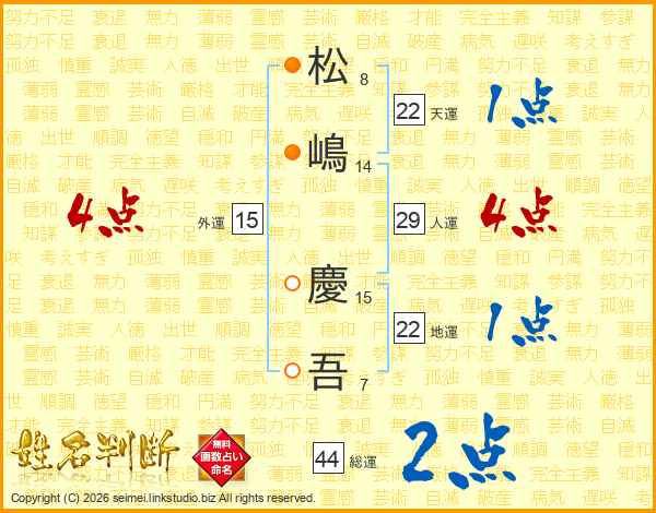 松(8画)嶋(14画) 慶(15画)吾(7画)