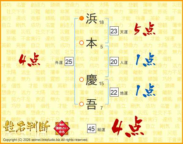 浜本慶吾さんの総運は45画の4点!