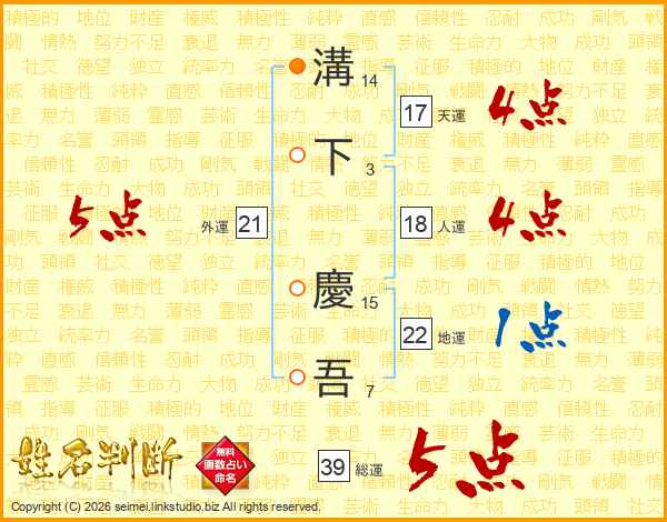 溝下慶吾さんの総運は39画の5点!