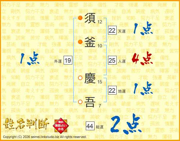 須釜慶吾さんの総運は44画の2点!