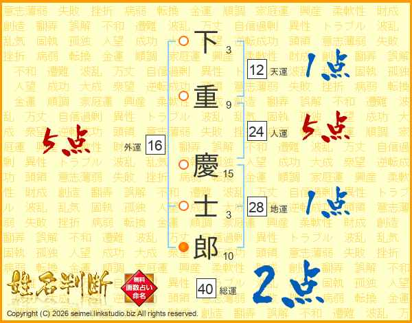 下重慶士郎さんの総運は40画の2点!