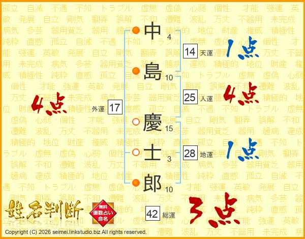 中(4画)島(10画) 慶(15画)士(3画)郎(10画)