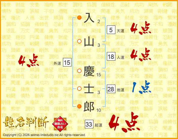 入山慶士郎さんの総運は33画の4点!