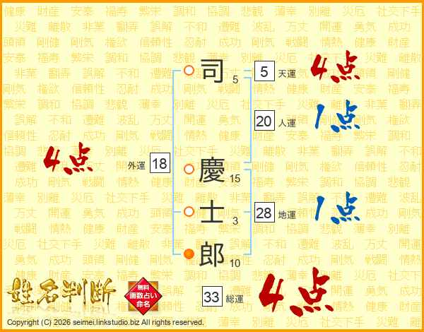 司慶士郎さんの総運は33画の4点!