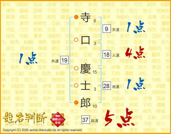 寺口慶士郎さんの総運は37画の5点!