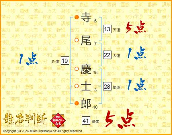 寺尾慶士郎さんの総運は41画の5点!