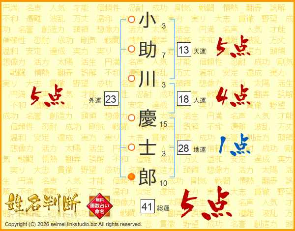 小助川慶士郎さんの総運は41画の5点!