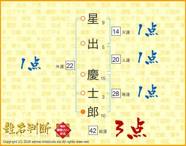 星(9画)出(5画) 慶(15画)士(3画)郎(10画)