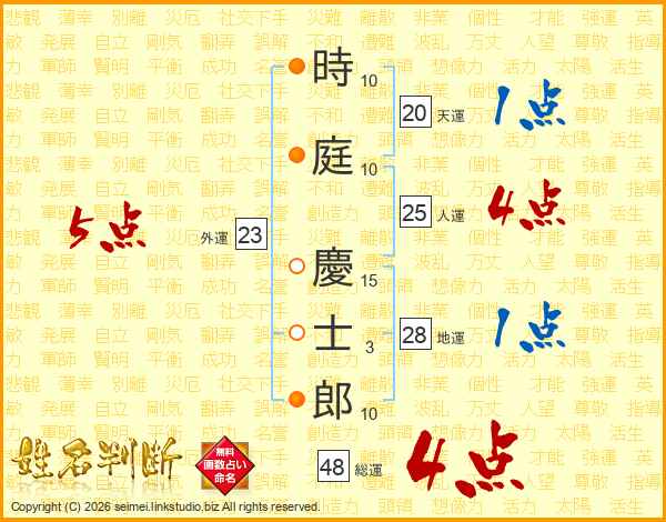 時庭慶士郎さんの総運は48画の4点!