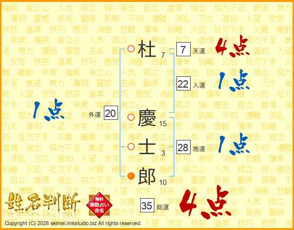杜慶士郎さんの総運は35画の4点!