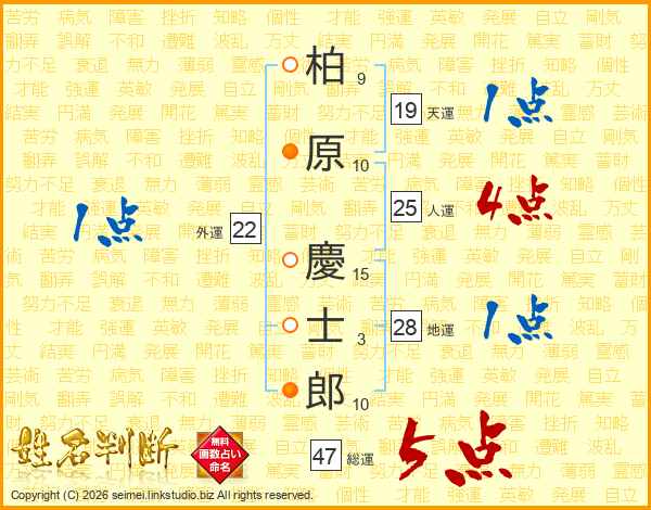 柏原慶士郎さんの人運は25画の4点!