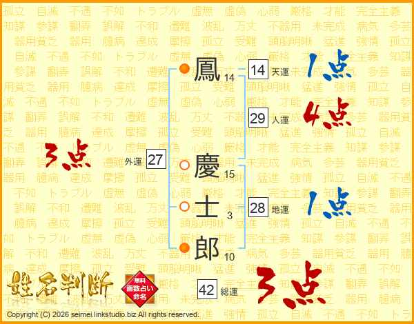 鳳慶士郎さんの総運は42画の3点!