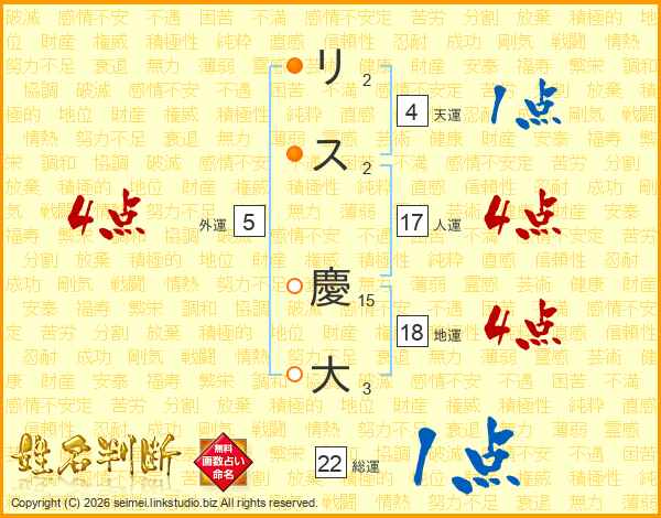 リ(2画)ス(2画) 慶(15画)大(3画)