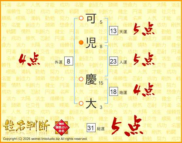 可(5画)児(8画) 慶(15画)大(3画)
