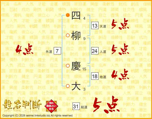 四柳慶大さんの総運は31画の5点!