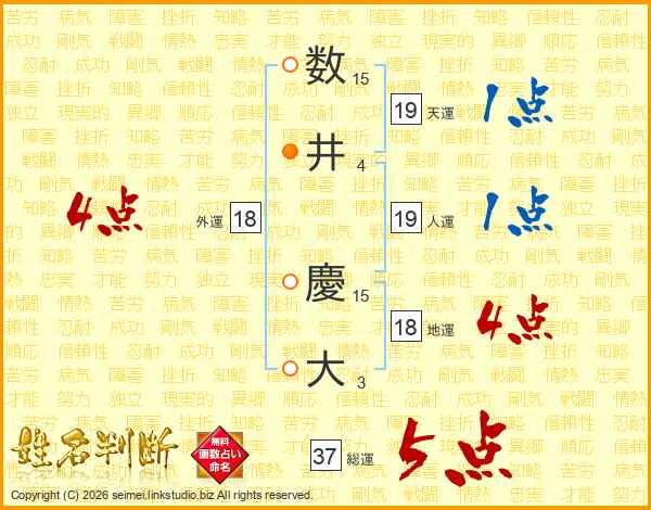 数井慶大さんの総運は37画の5点!
