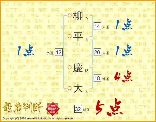 柳平慶大さんの人運は20画の1点!