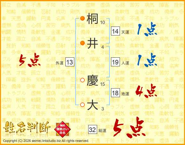 桐井慶大さんの総運は32画の5点!