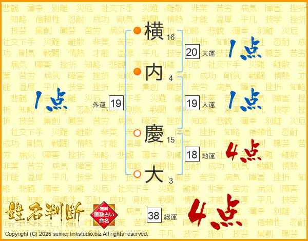 横内慶大さんの総運は38画の4点!