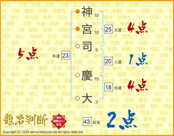 神宮司慶大さんの総運は43画の2点!