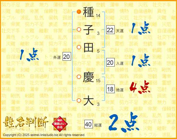 種(14画)子(3画)田(5画) 慶(15画)大(3画)