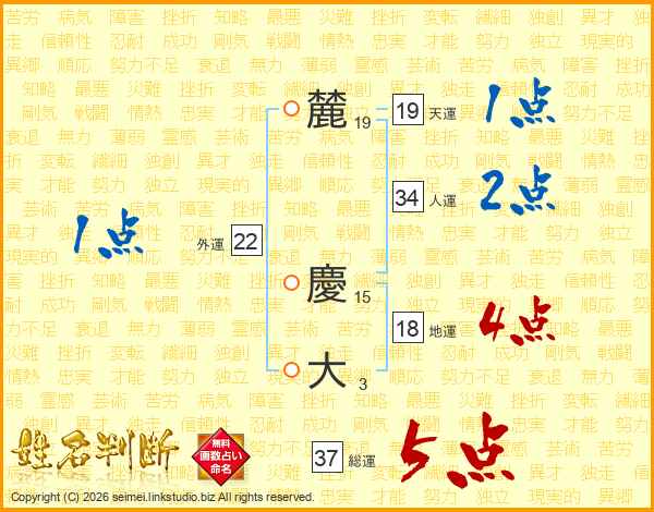 麓慶大さんの総運は37画の5点!